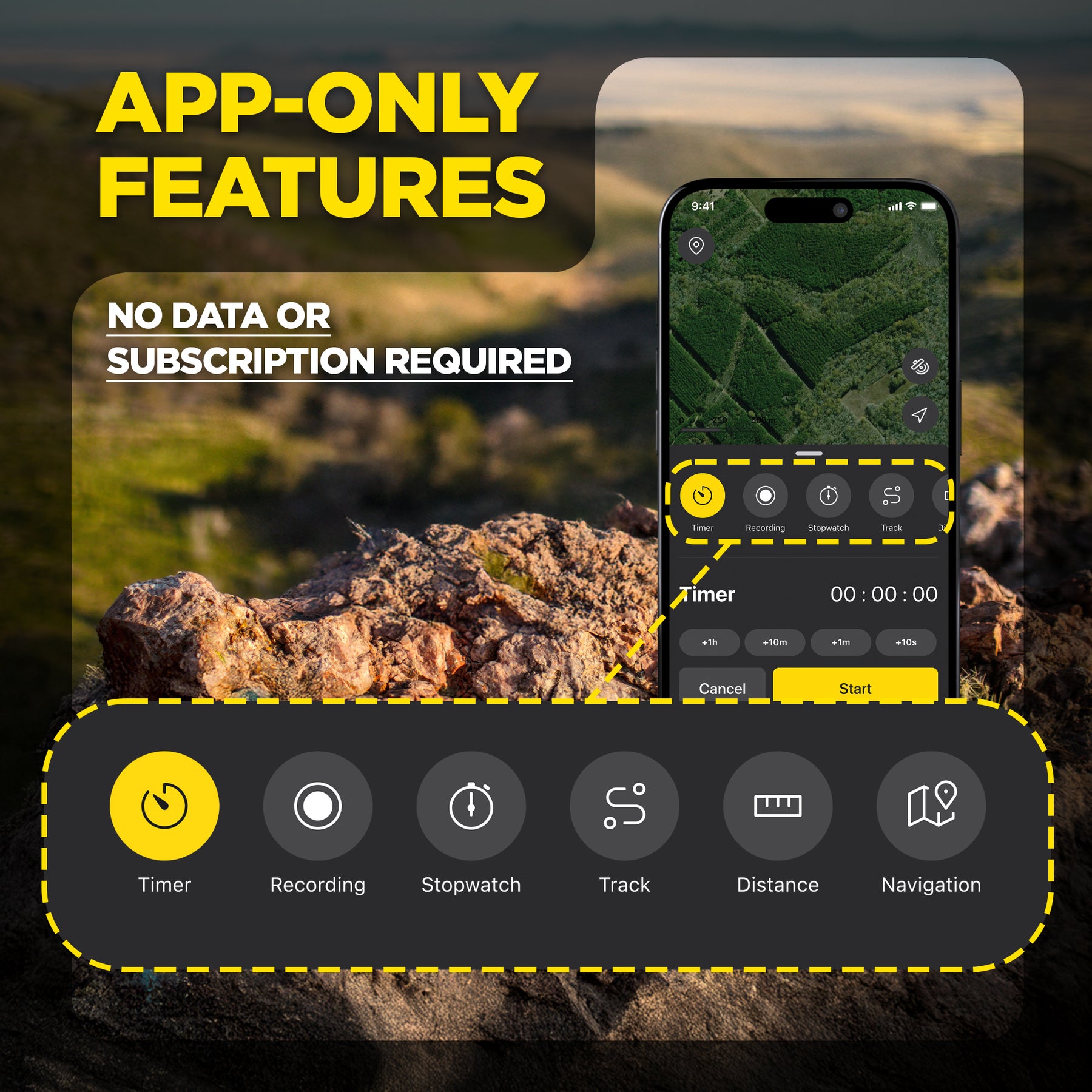 Run the COMPASS on its own for complete tracking and training without your phone. Or pair it with the free PF2 app to unlock satellite maps, offline navigation, GPS fencing, and public land boundaries. No fees. No data plans. Just dependable performance anywhere you hunt.