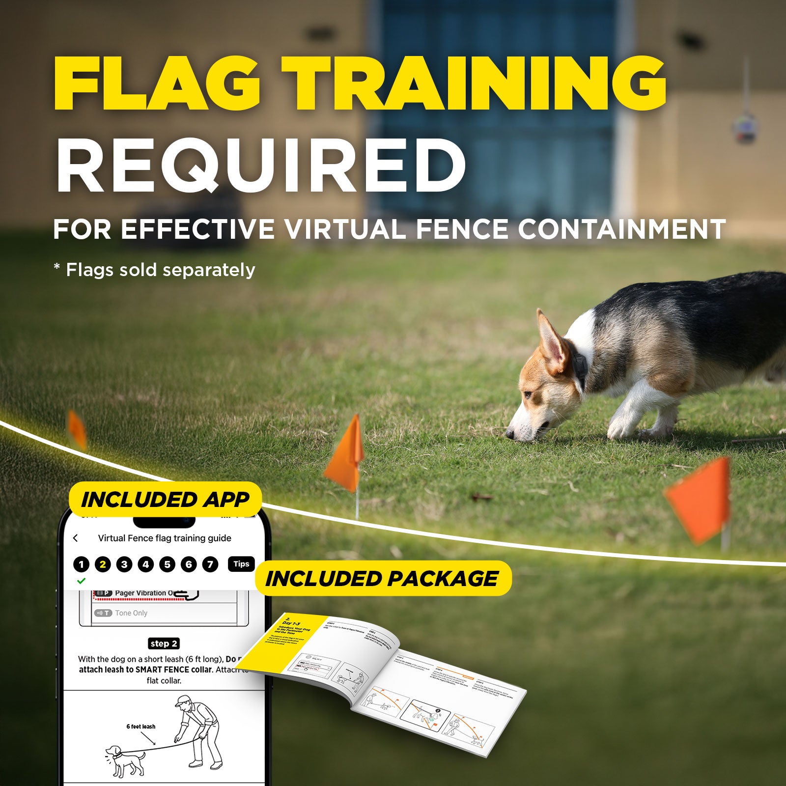 Flag training is required to help your dog understand and recognize the new boundary area before any corrections are applied. By walking your dog along the flags, they learn to associate the visual markers with the safe zone.