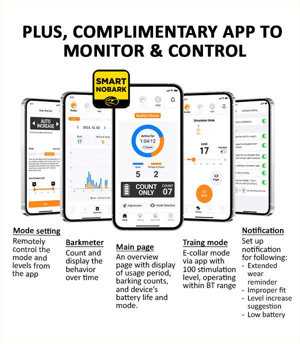Dogtra Smart NoBark is our most accurate no bark collar yet, detecting barking, whining, and howling with a triple detection system that filters out false triggers. Paired with an app that tracks your dog’s barking behavior and offers e-collar control, it gives you full oversight and control, all while ensuring your dog’s safety while improving barking behavior.